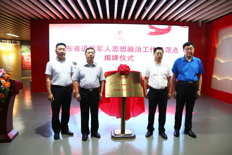 9月2日,“山東省退役軍人思想政治工作示范點”揭牌儀式在金猴集團展陳館舉行,市政府副市長、市公安局局長葉立耘,市退役軍人事務局局長苑圣慧,高區黨工委委員、管委會副主任趙林,集團公司黨委書記、董事長、總經理柳富林參加活動。