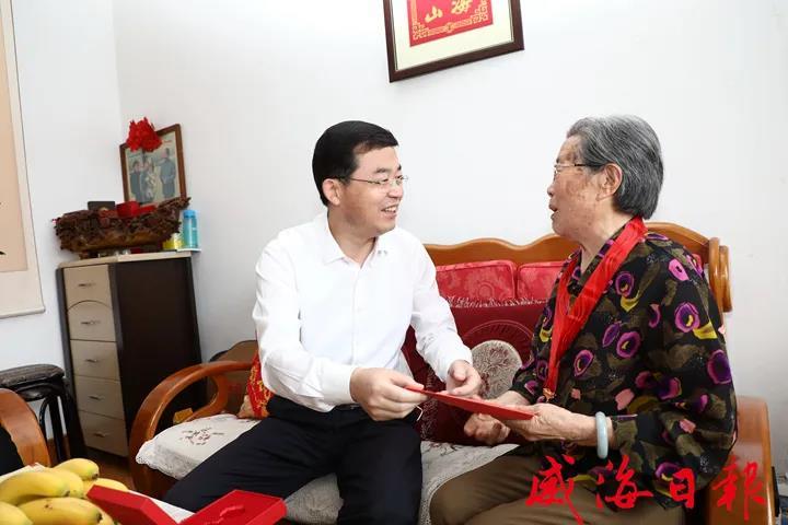6月22日,在慶祝中國共產黨建黨100周年前夕,威海市委書記張海波走訪慰問我公司老黨員高素貞,為她佩戴“光榮在黨50年”紀念章,并祝福老人健康長壽、闔家幸福。