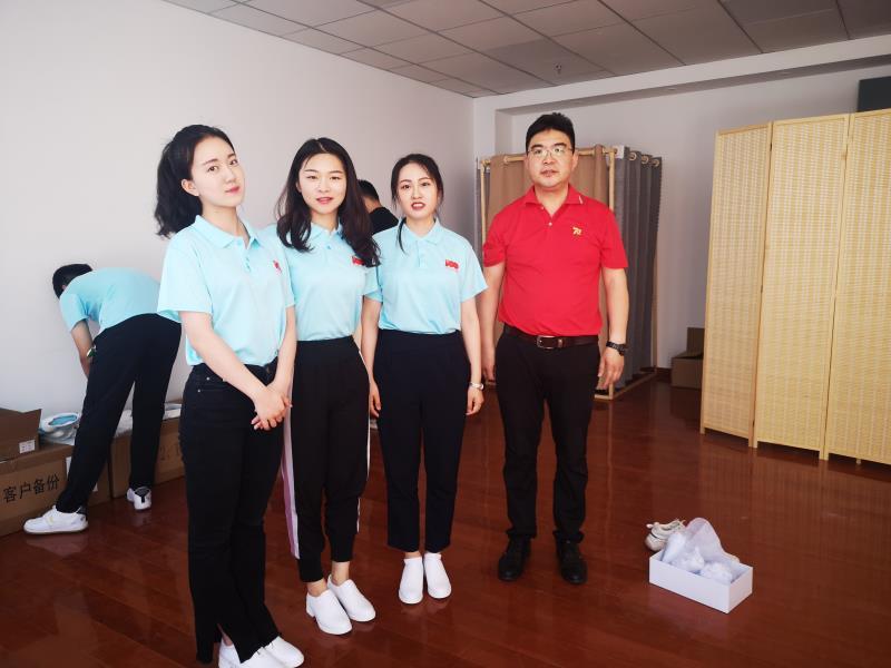 為確保萬無一失,金猴集團還抽調全國技術能手、行業技術能手、齊魯工匠、威海工匠、首席技師等技術人員組建300人生產團隊,不計成本、快速生產、按期交貨。因疫情防控需要,慶祝大會召開前一周,部分參會學生進行了人員調整。就在這緊要關頭,金猴集團及時調整力量,加班生產新調整人員的鞋子,用一流水準圓滿完成大會制鞋任務,得到各方的好評與感謝。