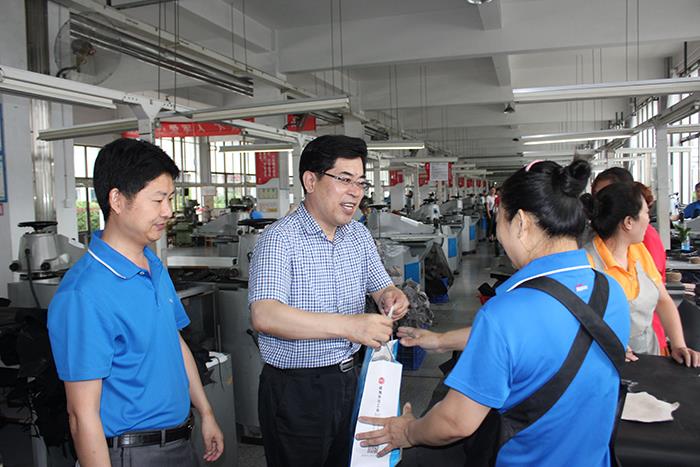 7月3日,威海市總工會調研員姚海巖、基層部部長鄭春剛在集團公司工會主席鄒曉伍的陪同下,頂著炎炎烈日,冒著酷暑高溫,走進鞋業公司裁料車間,為正在趕制出口及軍品皮鞋訂單的一線職工送來洗漱套裝、茶葉、礦泉水等防暑降溫用品,以表達工會組織對廣大職工的貼心關懷。